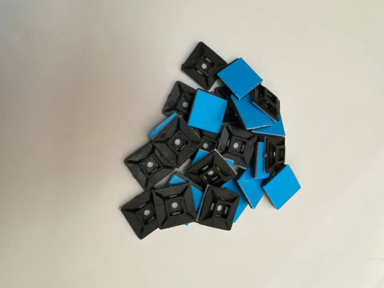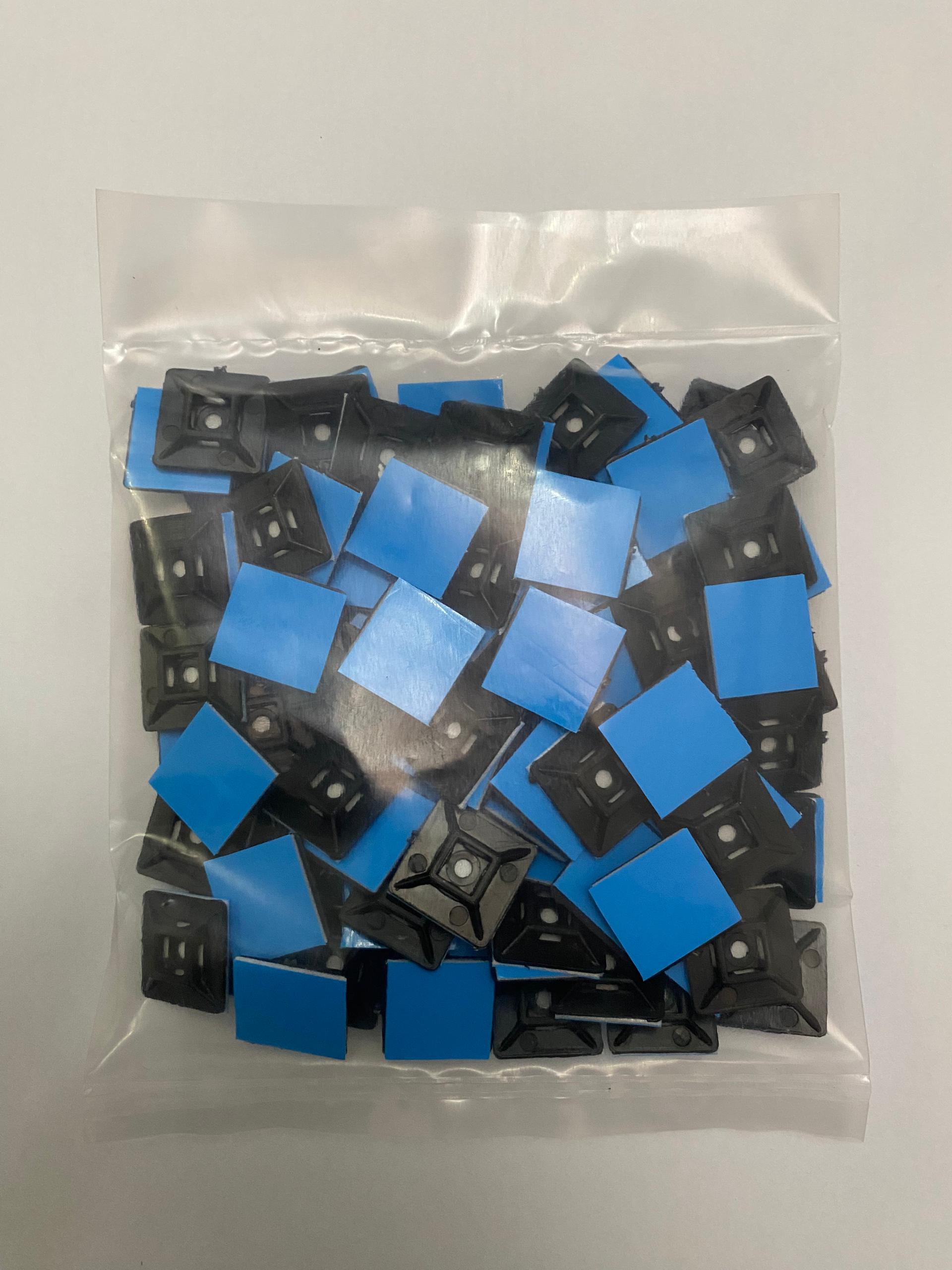 پايه هاي چسب دار بست کمربندي پلاستيکي جهت نگه داشتن خوشه هاي سيم، کابل، يا لوله سبک به سطوح استفاده مي شوند. اين پايه ها، داراي چسب دو طرفه اي که از يک طرف به پايه چسبيده و از طرف ديگر داراي کاغذ محافظ است مي باشد. جهت استفاده، کاغذ محافظ از چسب جدا شده، سپس چسب به سطح تميز، نسبتا مسطح و بدون روغن چسبانده مي شود. پس از آن، بست کمربندي داخل شيار پايه چسب دار بست کمربندي قرار گرفته و جهت خوشه بندي سيم ها، کابل ها، يا لوله ها مورد استفاده قرار مي گيرد.